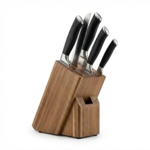 🔪 Profesjonalny 6-częściowy zestaw noży ze stali nierdzewnej w eleganckim bloku drewnianym.
